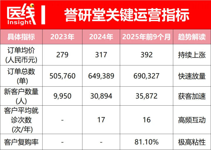 数据显示,誉研堂的获客能力在持续增强:2023年,新客户为9950名;2024年,新客户激增至30894名;2025年前9个月,新客户数更是达到了35872名。